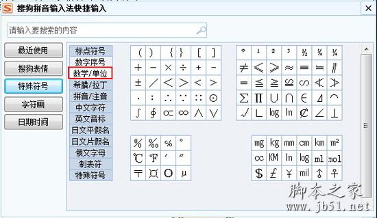 然后在打开了搜狗拼音输入法快捷输入的窗口,选择“数字/单位”选项,在右边的符号上就能找到加减乘除的符号了。然后点击输入即可。如图所示: