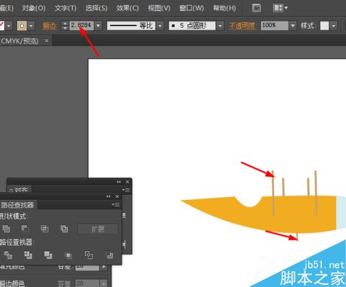3、接着选择直线工具,画5条直线,描边改为4pt,如图所示