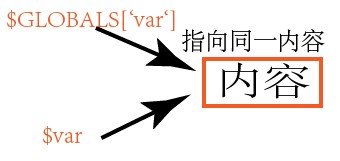function quoteTest(){ global $var ; //相当于 $var = &$GLOBALS['var']; $var = 5; //因为他们都指向 同一内存内容}$var=1;quoteTest();echo $var; //结果 5