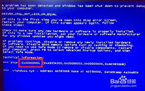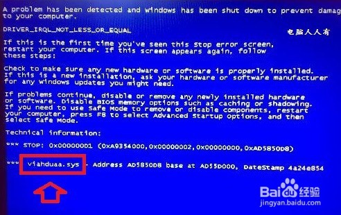 3、这里还显示了导致蓝屏的viahduaa.sys文件名,这是集成声卡的驱动程序。