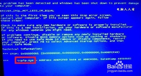 7、这张蓝屏出错文件tcpip.sys就不一样,这是TCP并发连接数限制文件。有时候,卸载了安全软件就好了!原因是它会传输数据而出错!