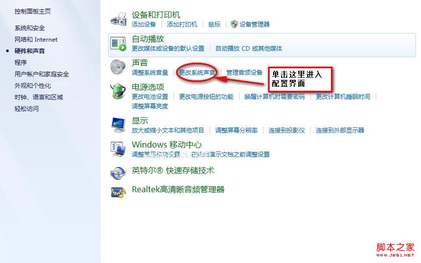请您点击开始---控制面板---硬件和声音--- “声音”选项卡下面的“更改系统声音”按钮。