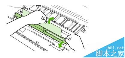 3、小心避免松散的碳粉溢出。使用无绒干布清除可能落入设备的碳粉。如果松散的碳粉落,入设备,则可能会导致暂时性打印质量问题。打印几页后,松散的碳粉应会从送纸道清除。如果碳粉沾在衣服上,请用干布将它抹去,然后用冷水洗涤衣服。(热水会使碳粉渗入纤维。)