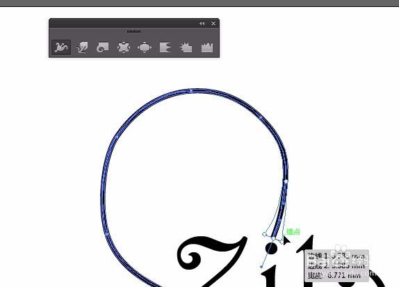 3、改轮廓大小为5.用小白选择锚点。选择宽度工具来设置一段的点。如图。