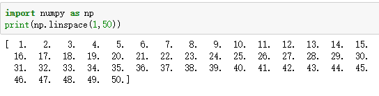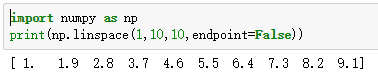 import numpy as np print(np.linspace(1,10,10,endpoint=False))