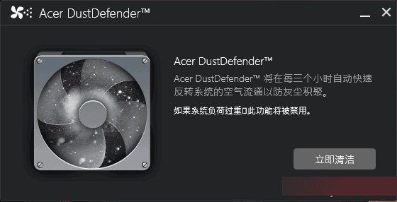 以ACER笔记本为例,如今部分中高端机型就自带“ACER DustDefender”软件,点击“立即清洁”按钮就能让风扇高速反转,将刚刚积累的灰尘吹出笔记本体外。