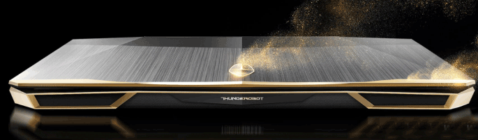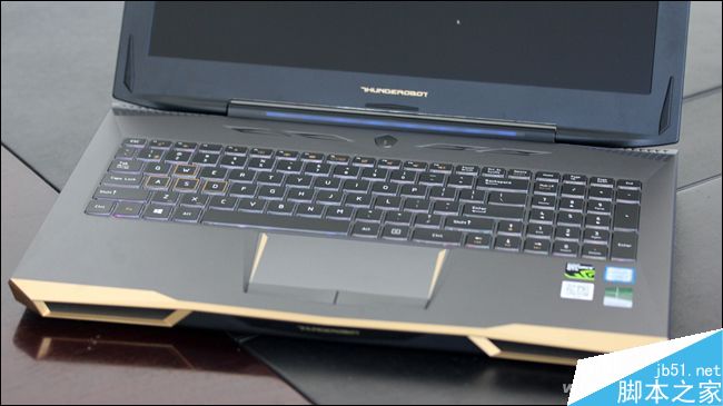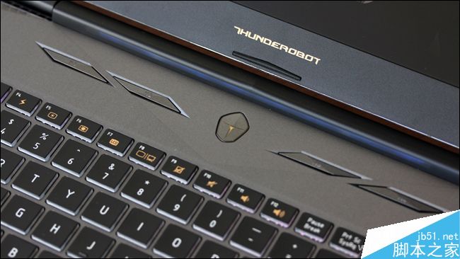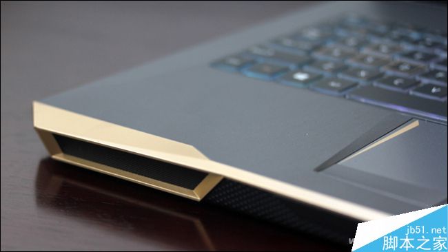 在雷神911 targa的B面,屏幕顶部的摄像头和屏幕下方的雷神Logo,也都引入了铂晖金色彩的装饰。