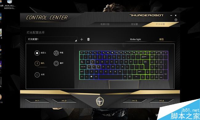 对了,雷神还专门为911 targa开发了Control Center控制软件,可以对灯光进行控制,分为Xtrike light(转轴处灯光,支持自定义、呼吸、波浪、循环、流星五种灯光模式)和键盘灯光(可对四个区域进行设置,可选自定义、呼吸、随机、循环模式四种灯光模式)。