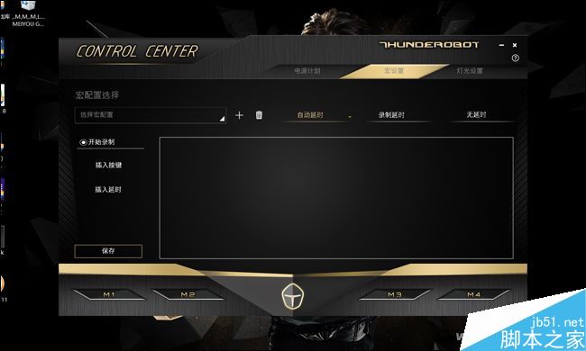 除了设置灯光效果,Control Center控制软件还能进行电源计划与宏设置,前者可以选择四个笔记本性能模式,后者可以对宏按键进行定义,方便玩家进行游戏快捷设置。