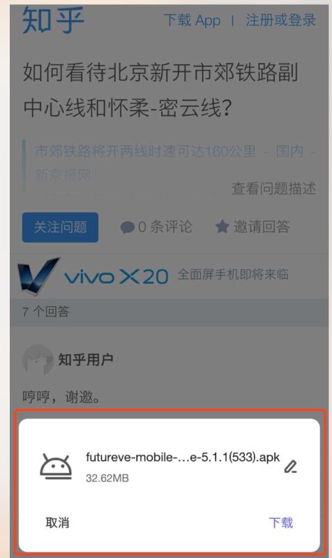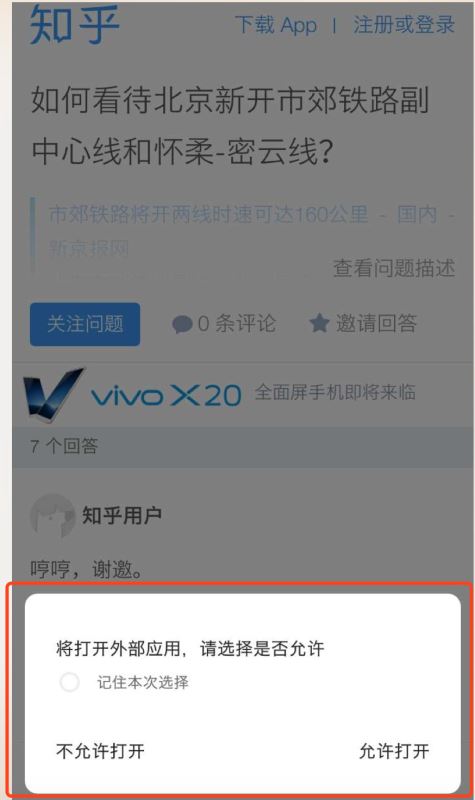 他的逻辑是先提示我是否打开手机中的知乎APP(浏览器的机制询问用户操作许可),然后接着又弹出下载的提示。