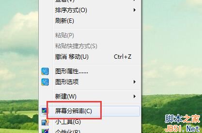1、右键点击桌面的空白处,点击“屏幕分辨率”选项。