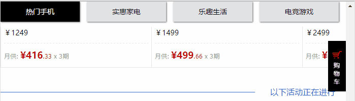 它就把固定的时候,相对浏览器顶部的位置设置成了top: 20px。sticky元素的高度也是,为了在固定的时候显示更好看的效果,调整原来的Line-height或者padding-top等更高度有关的属性,也是非常常见的需求,比如天猫花呗的这个页面,这块内容就用到了sticky组件: