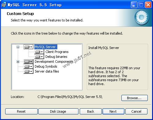 MySQL默认的安装路径为“C:\Program Files\MySQL\MySQL Server 5.5\”,如果想要更改安装的路径,可以单击安装路径右侧的Browse按钮来更改默认安装路径。
