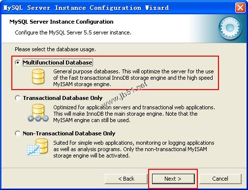Multifunctional Database:选择该选项,则同时使用InnoDB和MyISAM储存引擎,并在两个引擎之间平均分配资源。建议经常使用两个储存引擎的用户选择该选项。