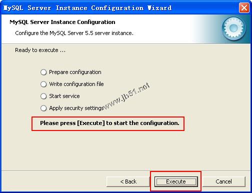12、如果对设置准确无误,单击Execute按钮,MySQL Server配置向导执行一系列的任务,并在对话框中显示任务进度,执行完毕之后显示如图所示:单击Finish按钮完成整个配置过程。
