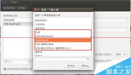 3)如果在添加输入法中没有你想要的输入法,可以通过如下的命令找到适合的输入法