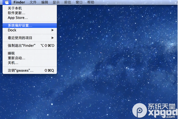 1.单击最左上角的苹果图标,在下拉菜单中点击"系统偏好设置"进入设置