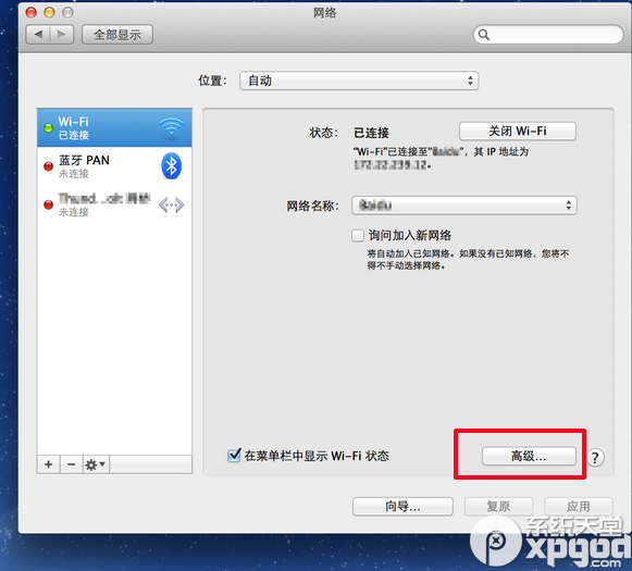 3.从列表中选择相应的网络连接服务,然后单击"高级"选项