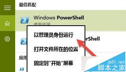 3、搜索Powershell并右键以管理员权限打开。