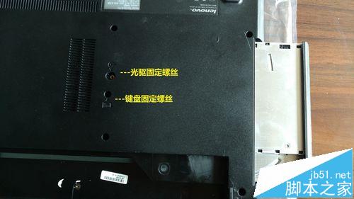 4、光驱取出后,可见额外的2颗外壳固定螺丝,加上电池位置3颗螺丝、外壳10颗,键盘固定螺丝1颗,加上之前取下的光驱位固定螺丝1颗。总计17颗螺丝(4种不同类型)全部卸下。