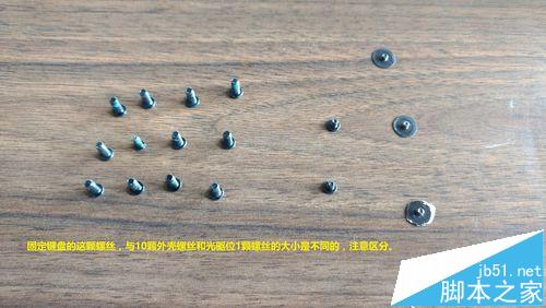 3)固定键盘的这颗螺丝,与10颗外壳螺丝和光驱位1颗螺丝的大小是不同的,往回装的时候注意区分。