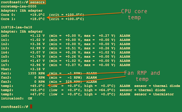 图 03: sensors命令提供了一台Linux计算机的CPU核心温度和其它信息