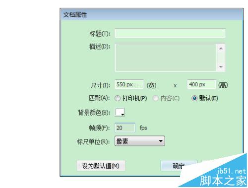 1、打开FLASH软件,新建一个FLASH文档;设置文档属性;