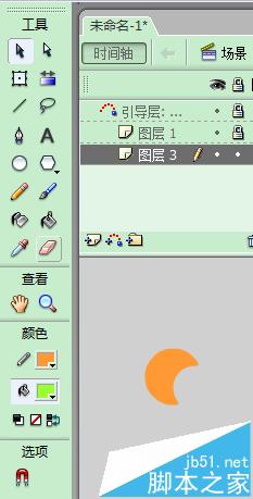 用FLASH模拟太阳的出升,落山,到月亮的升起降落。用到引导图层,和动画补间。