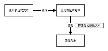 >>> rex = r"a.d" # 正则表达式文本 >>> original_str = "and" # 原始文本 >>> pattern = re.compile(rex) # 正则表达式对象 >>> m = pattern.match(original_str) # 匹配对象 >>> m <_sre.SRE_Match object at 0x101c85b28> # 等价于 >>> re.match(r"a.d", "and") <_sre.SRE_Match object at 0x10a15dcc8>