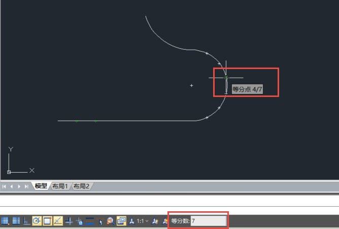 我们直接输入要等分的数量,比如说7后,回车。