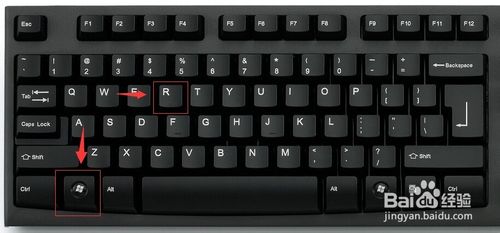 1、找出键盘上的小窗口图形“Windows”键。按住“Windows”键不放,同时按住键盘上的“R”键。