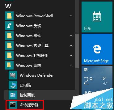 2、在所有应用中展开"Windows系统”,右击“命令提示符”。
