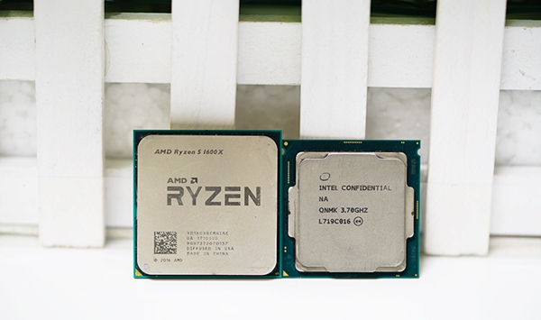 锐龙R5 1600X(左)、i7-8700K(右)正面对比图
