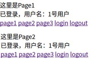 page1.jsp, page2.jsp, page3.jsp大同小异显示不同的页面,用于验证登录状态的记录(这里仅以page1.jsp为例):