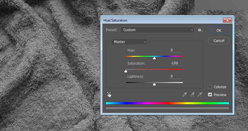 第2步、图像>调整>色相/饱和度,饱和度值更改为-100。