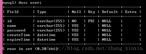 1、查看数据库某个表的字段信息:desc 表名;