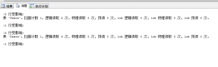 两个查询都返回2条数据,聚集索引扫描仅仅2次逻辑读,使用索引IX_UserName却达到了6次的逻辑读