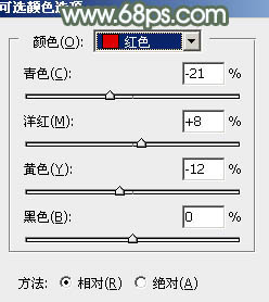 3、创建可选颜色调整图层,对红、黄、青、白、中性色进行调整,参数设置如图6 - 10,确定后同样按Ctrl + Alt + G 创建剪贴蒙版,效果如图11。这一步把高光部分的红色转为粉红色。