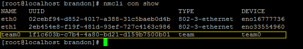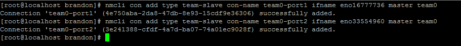 在这里我们添加 eno16777736 和 eno33554960 作为 team0 接口的从设备。