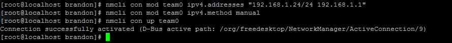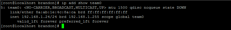 现在让我们为 team0 接口分配一个 IP 地址并启用这个连接。这是进行 IP 分配的命令。