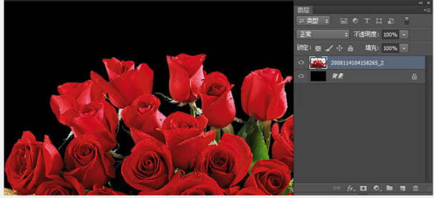 1、新建个PSD文件,将玫瑰的素材图片导入内部,并且栅格化,通过魔术棒工具去除白色背景如图。