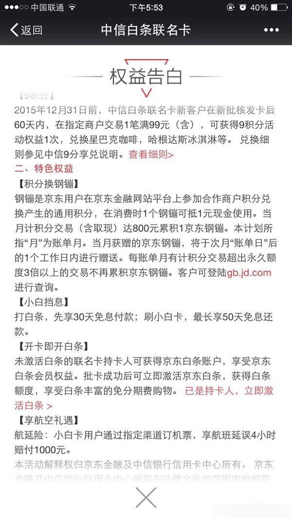 至于京东为什么会发布这么一张信用卡,京东消费金融事业部总经理许凌,介绍白条刚发布,央行就请他去喝茶,说白条是“虚拟信用卡”,违规!这让他萌发了要发一张信用卡的念头。找到了拥有世界上最大支付网络的银联,和曾经说要上太空的中信银行,“小白卡”就这么诞生了。