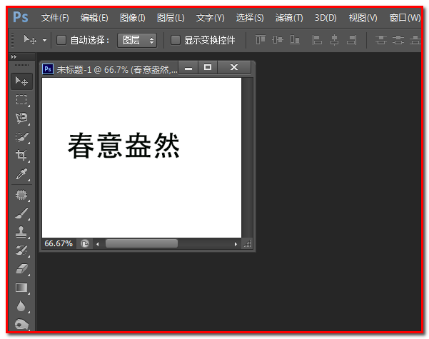 3、现在要把文字图层的文字“春意盎然”选中。