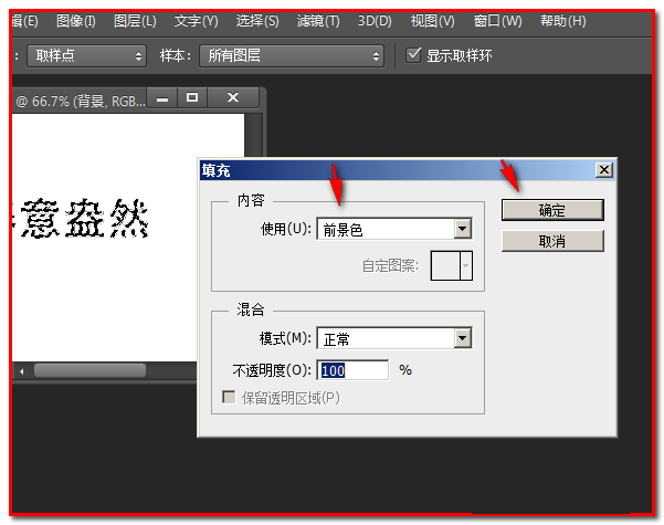 弹出的操作框内点选前景色再点确定即可。