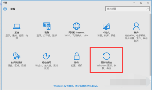2、在win10的“设置面板”依次点击“更新和安全”-“激活”。