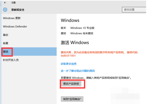 3、点击“更改产品密钥”输入 PW48G-MNG8W-B9978-YWBRP-76DGY 并点击下一步,待出现“无法激活Windows”时点“关闭”按钮。