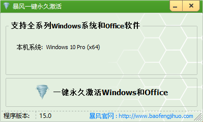 如果上面的激活方式失效可搜索下载“KMS10”或“暴风一键永久激活”等工具,一键激活win10。(注意:激活过程360等杀毒弹窗一定要点允许,否则激活失败)