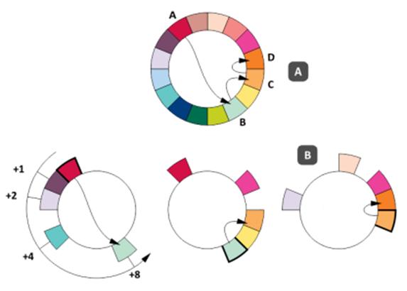 给大规模的集群维护一个完整连贯的hash环很不容易。对于相对小一点的数据库集群就不会有问题,研究如何在对等网络中将数据放置与网络路由结合起来很有意思。一个比较好的例子是Chord算法,它使环的完整性让步于单个节点的查找效率。Chord算法也使用了环映射键到节点的理念,在这方面和一致性hash很相似。不同的是,一个特定节点维护一个短列表,列表中的节点在环上的逻辑位置是指数增长的(如下图)。这使得可以使用二分搜索只需要几次网络跳跃就可以定位一个键。