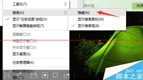 去掉任务栏中的搜索windows