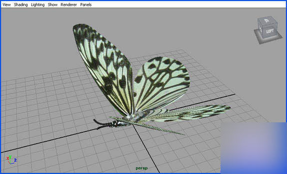 1.先准备一个带循环动画的角色。角色是什么无所谓,我这里用一只蝴蝶举例子,它的动画长度为23帧。角色所有部件必须冻结位移,删除历史并群组。